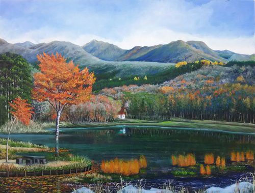 ![]() "観音沼、秋風景" 2018 カンバスに油彩 伊東興太郎 606x500mm |