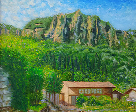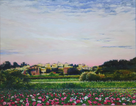 ![]() "田舎の風景" カンバスに油彩 根津君子 380 x 455mm |